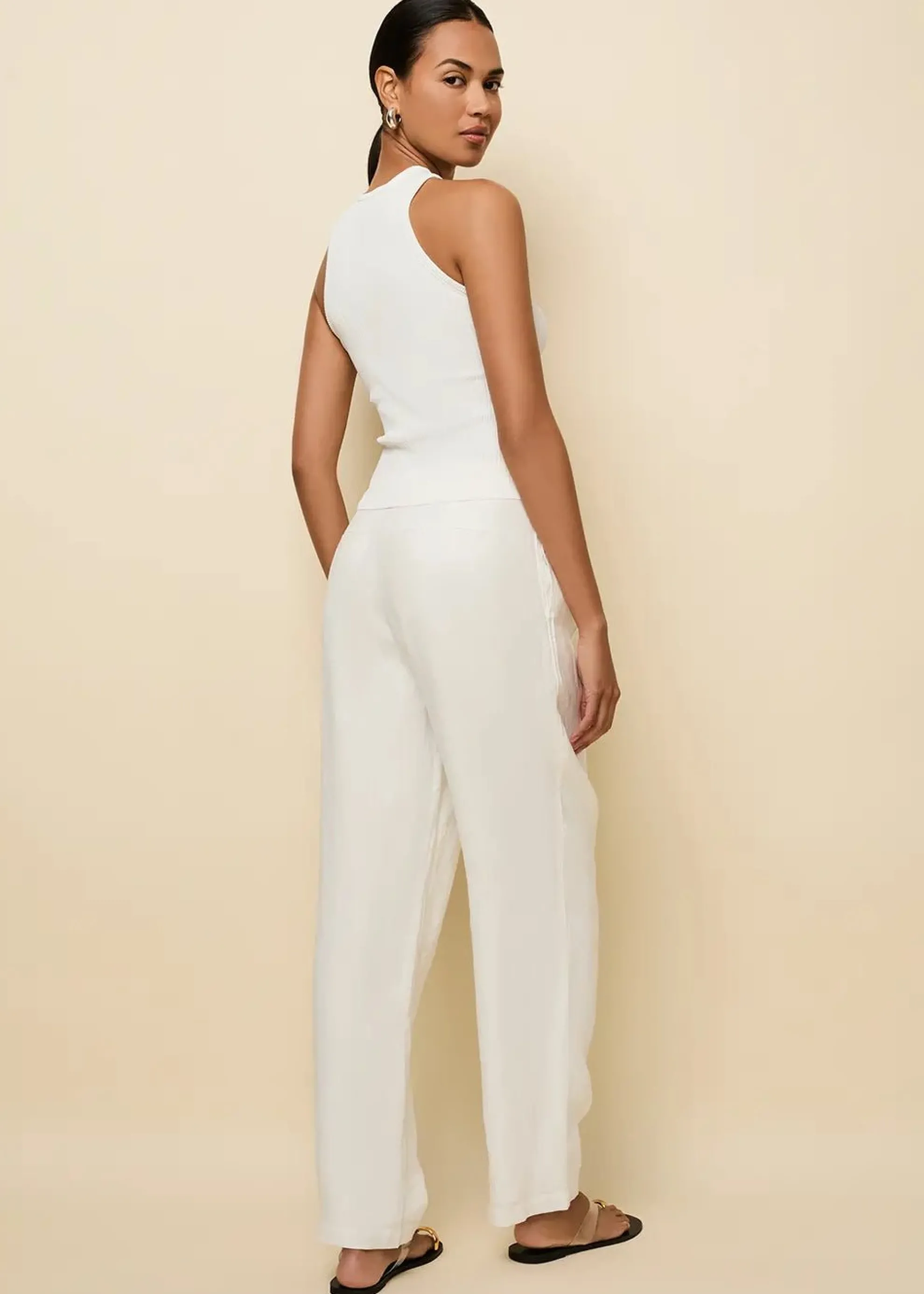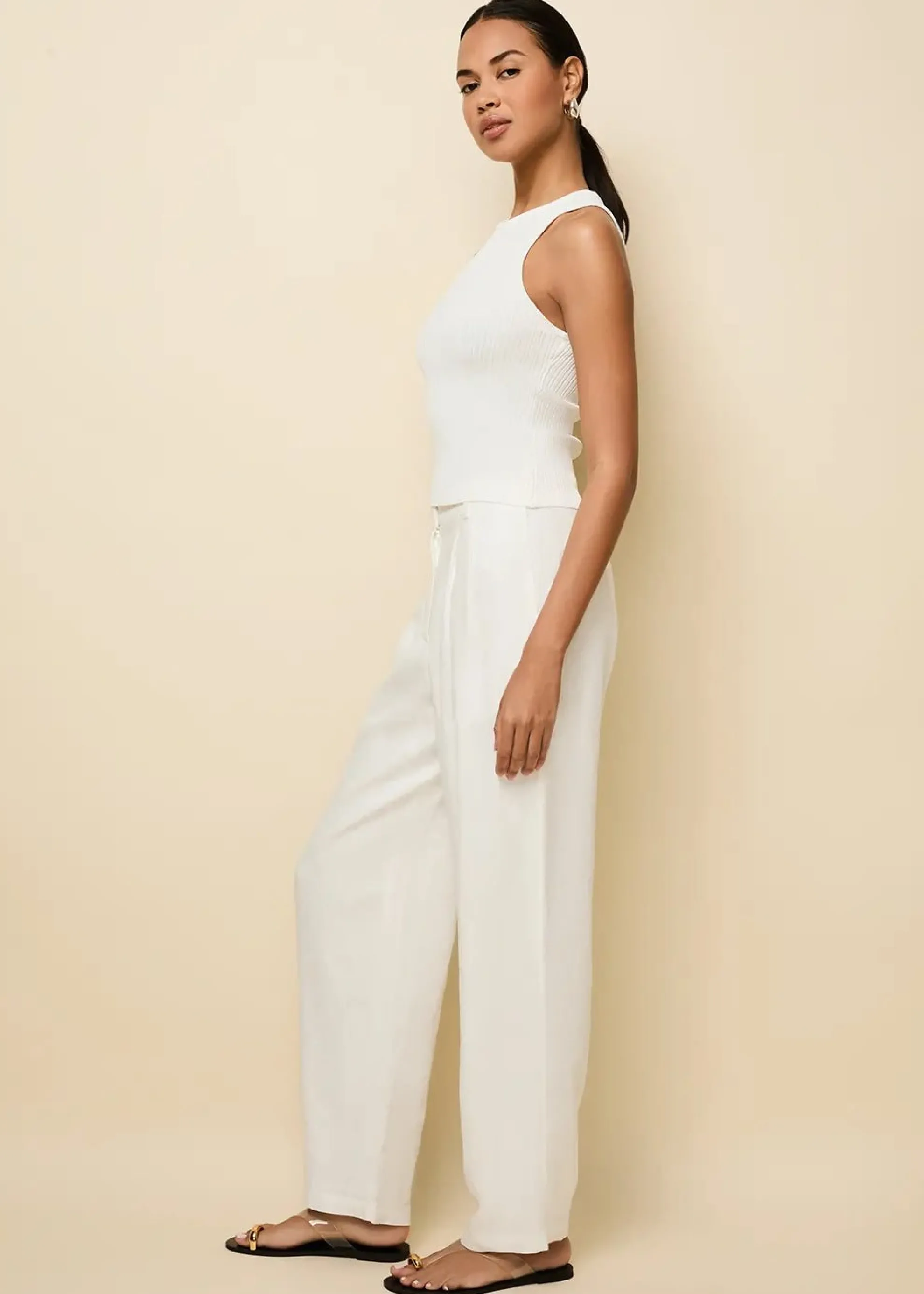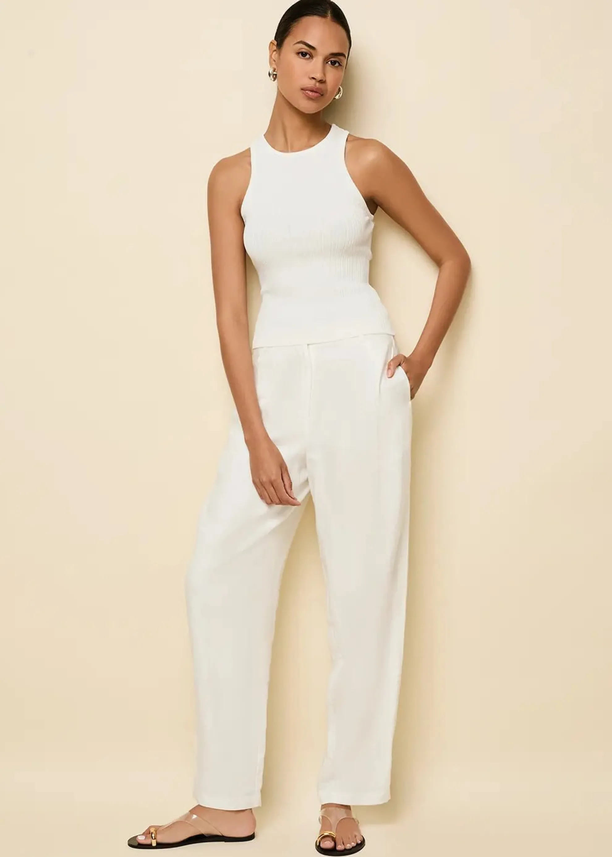 The Varena Tank is designed in our signature ribbed viscose knit. This top features a crew neck and slim fit. Style with the Taline Linen Pant.